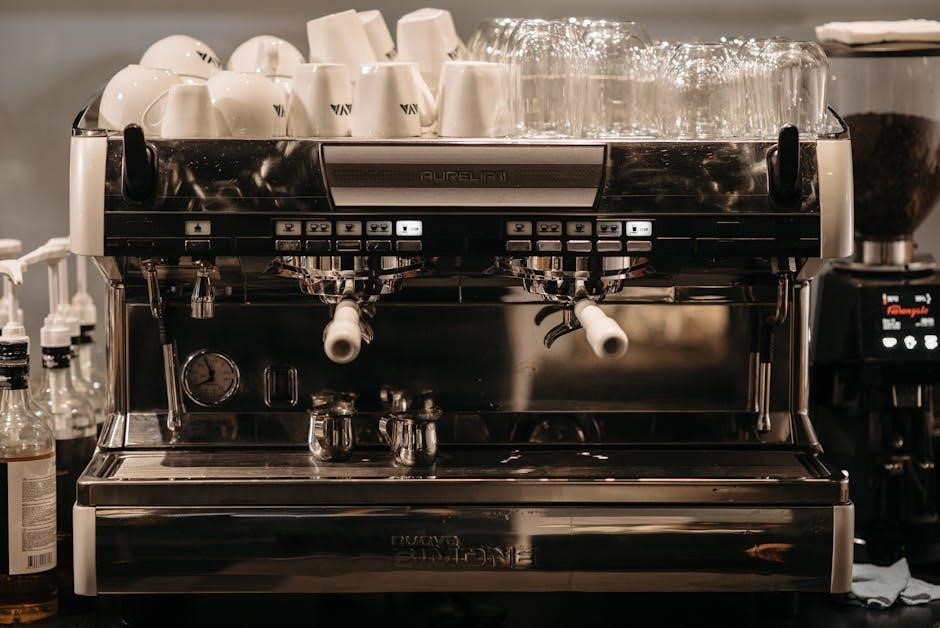 Mr. Coffee espresso maker indicator lights signal operational status. A power light confirms the machine is on‚ while a ready light indicates sufficient heating. Low water or descaling alerts flash when maintenance is needed. Steam readiness lights signal wand availability. Due to limited official manuals‚ interpreting these lights often relies on observation and comparison with similar ECM series models‚ found through resources like the Internet Archive.